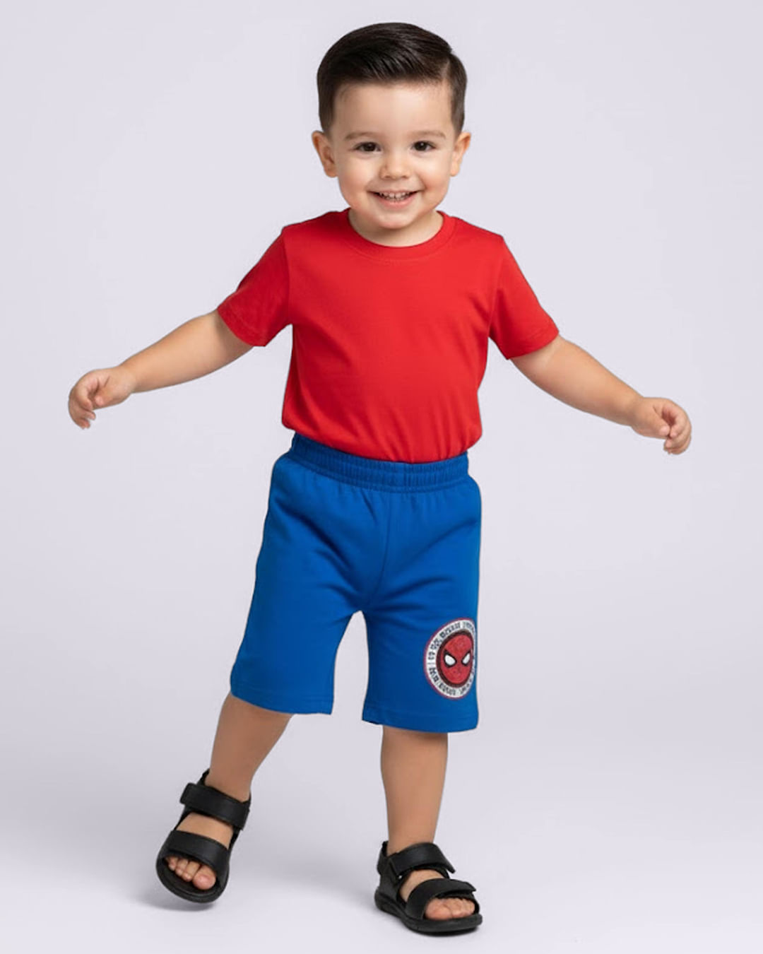 Mais Detalhes: A bermuda bebê moletinho reta Marvel Homem-Aranha azul é ideal para o dia a dia dos pequenos heróis. Confeccionada em moletinho macio e leve, garante conforto, respirabilidade e total liberdade de movimento. O modelo conta com cós com elástico, que oferece ajuste perfeito e praticidade ao vestir, e estampa divertida do Homem-Aranha, trazendo um toque lúdico e cheio de personalidade ao visual. Uma peça versátil, perfeita para compor looks casuais e confortáveis.
