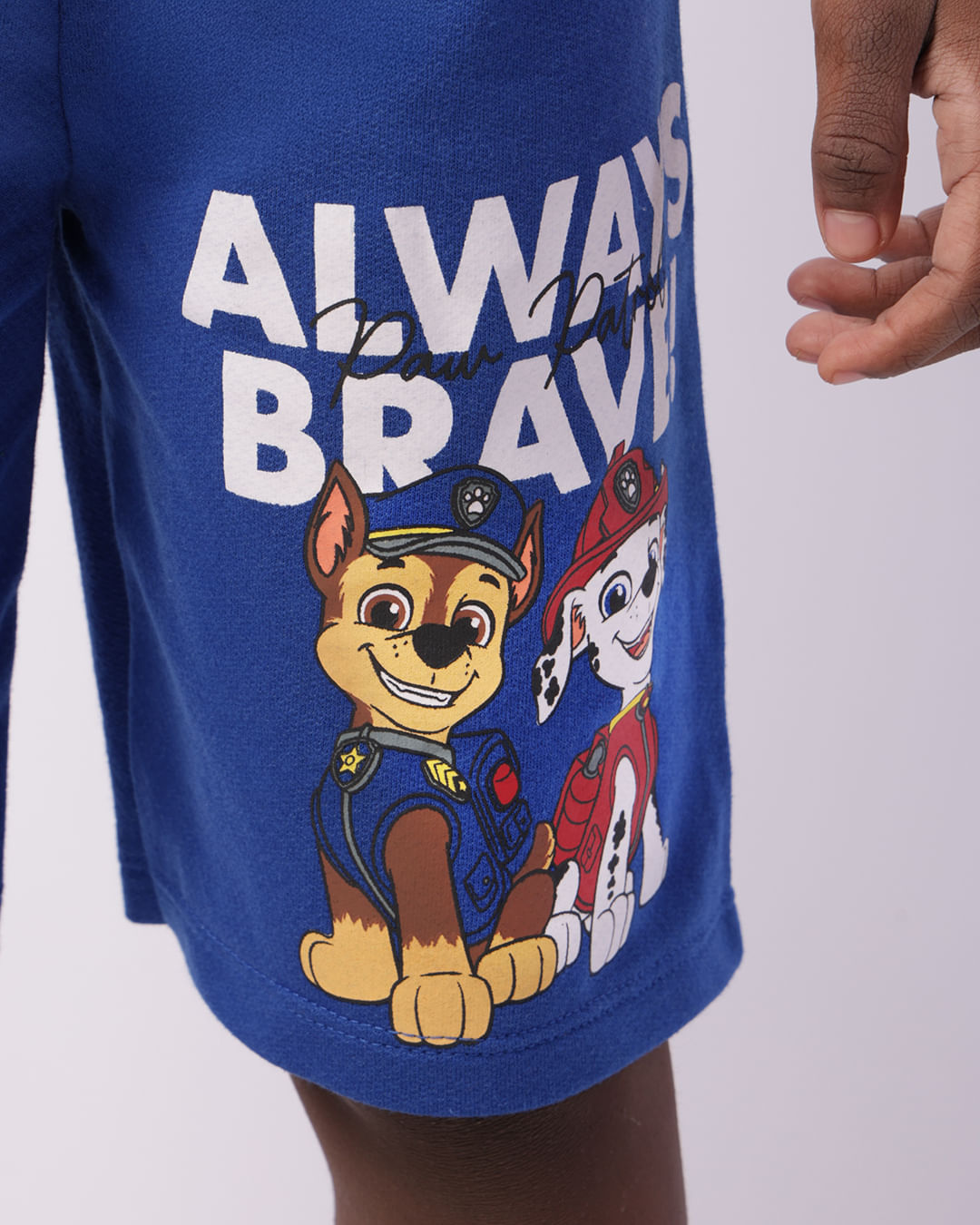 Mais detalhes: Bermuda infantil Patrulha Canina Chase e Marshall, confeccionada em moletinho, Modelagem reta. Possui cós com elástico, estampa. Com costura e acabamento padrão.