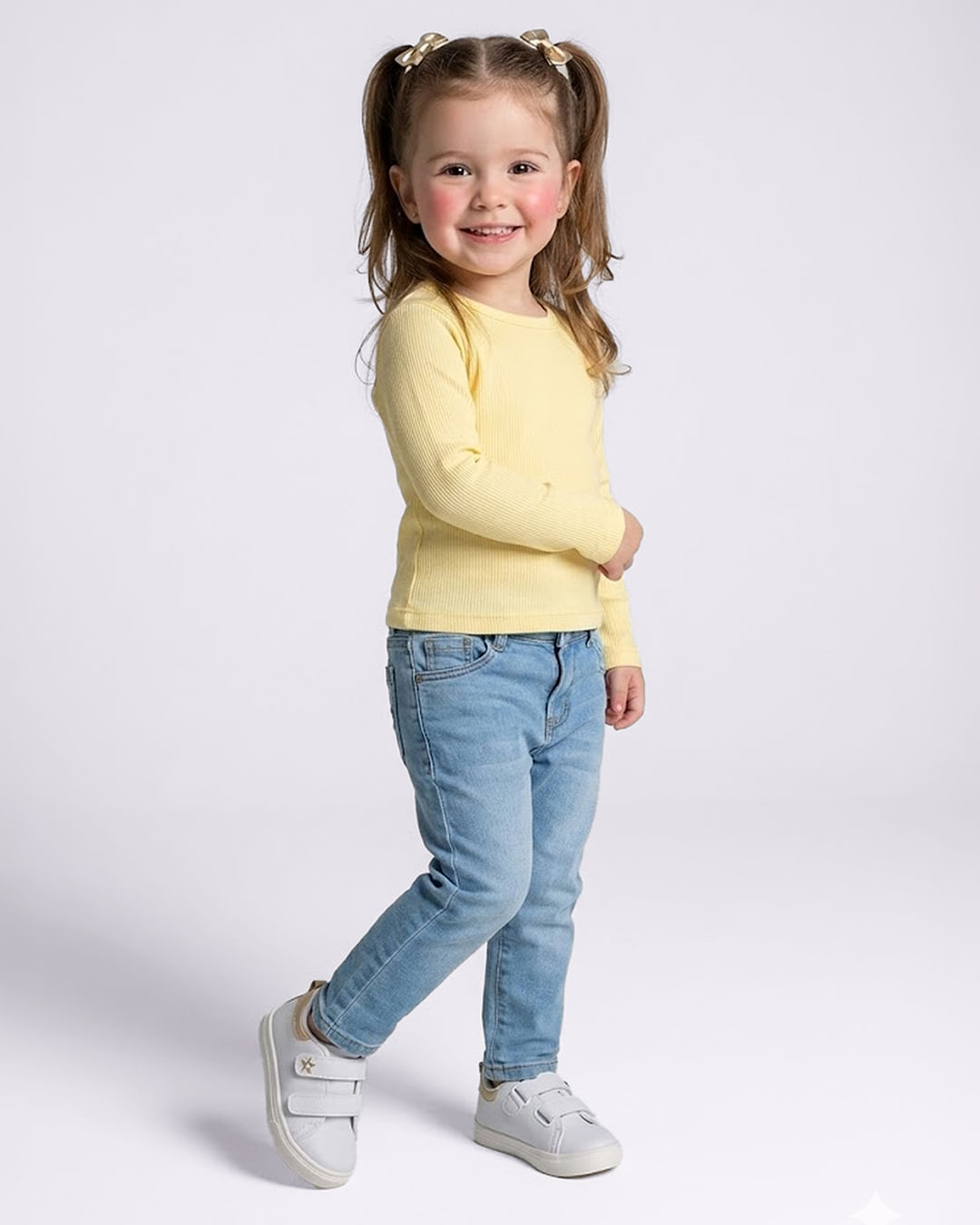 Mais detalhes: Blusa bebê com manga longa e acabamento canelado, destacando detalhe em frufru nas barras que adiciona charme ao visual. Possui modelagem confortável e toque macio, ideal para acompanhar as pequenas em diferentes momentos do dia com liberdade de movimentos. O design delicado permite composições práticas e harmoniosas para looks divertidos.