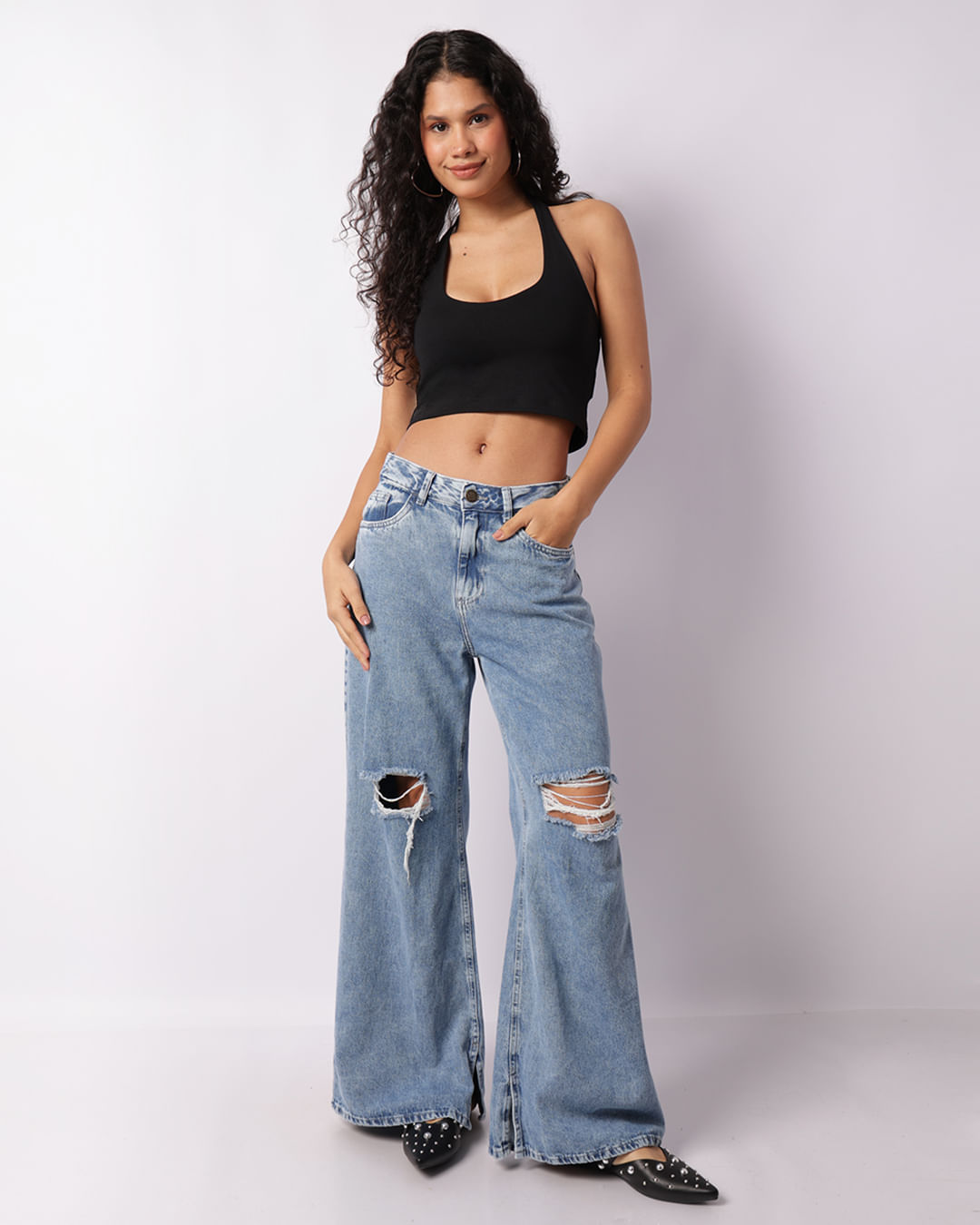 Mais detalhes: Blusa feminina confeccionada em algodão. Modelagem cropped, frente única. Peça básica. Com costura e acabamento padrão.