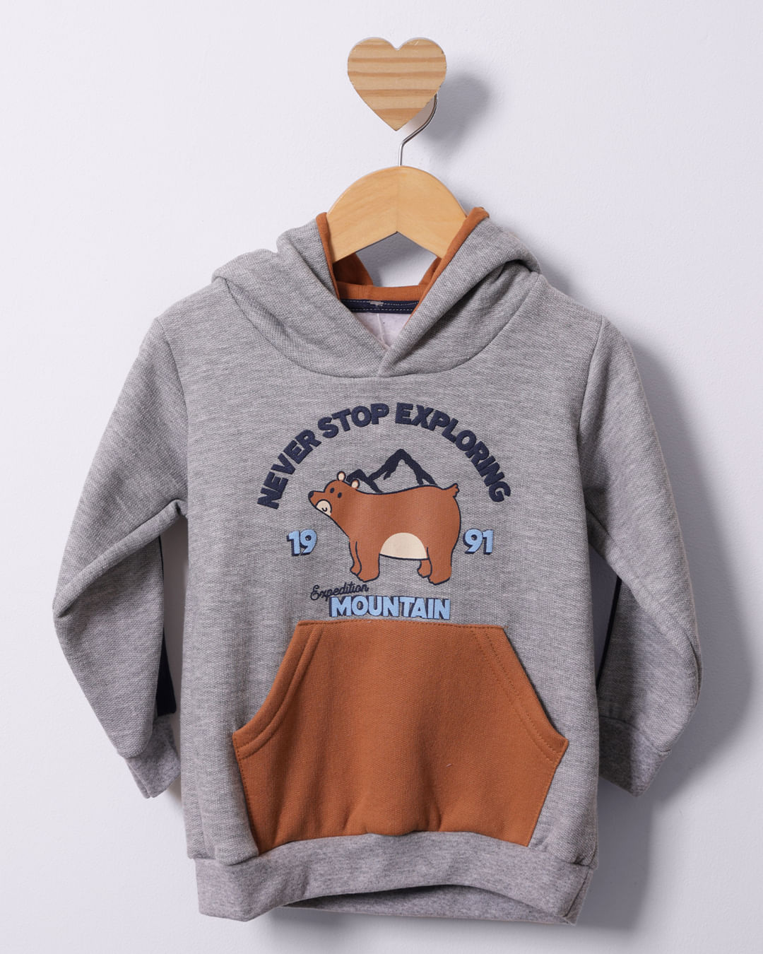 Mais detalhes: Blusão bebê, confeccionado em moletom, modelagem padrão. Possui capuz e bolso canguru. Estampa frontal em emboss, acabamento interno felpado. Com costura e acabamento padrão.