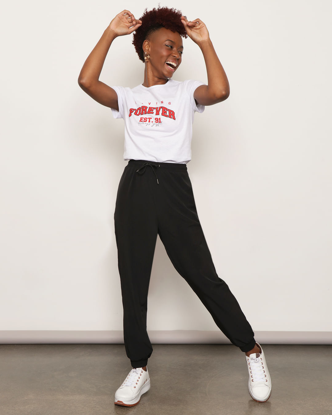 Há inúmeras possibilidades de combinações para deixar o look bem bonito e ainda sim confortável como promete. As mulheres podem combinar a calça jogger com salto alto, sapatilhas ou tênis; cropped, body, camisa social, casaquinho ou blusa oversized. A calça jogger pode ser combinada em todas as estações do ano.