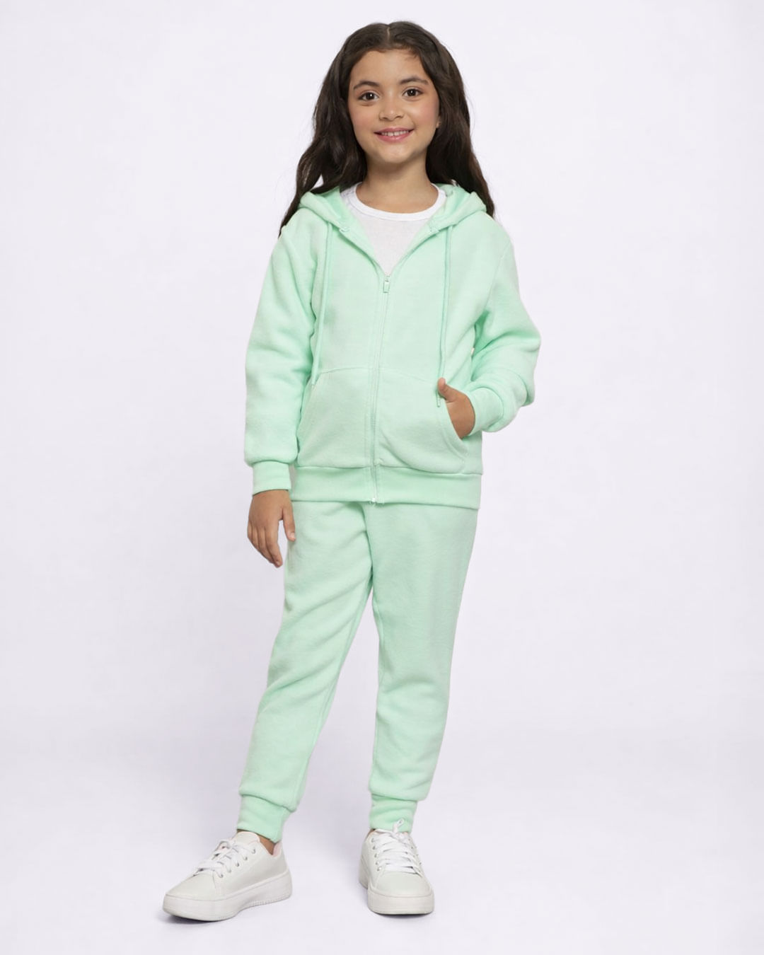 Mais detalhes: Calça Infantil confeccionada com fleece, bolsos frontais, cordão de ajuste no cós com elástico com costura e acabamento padrão.