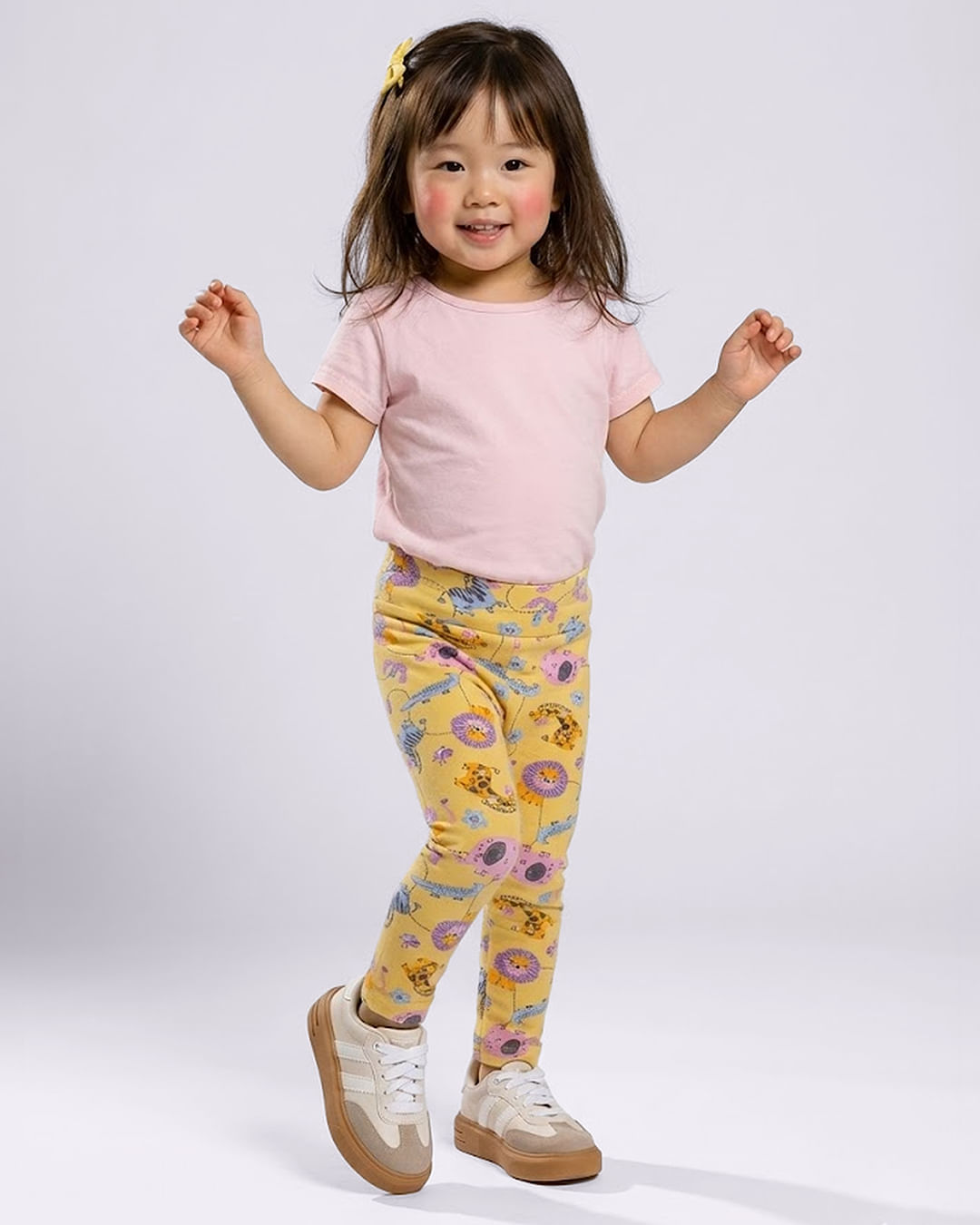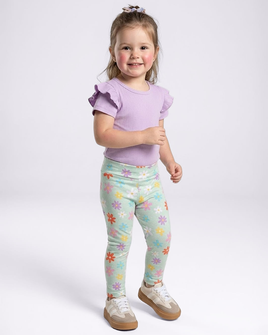 Calça legging bebê confeccionada em tecido de malha. Possui elástico embutido no cós, barra simples, acabamento e costura no tom. A peça apresenta estampa divertida com modelagem justa ao corpo.