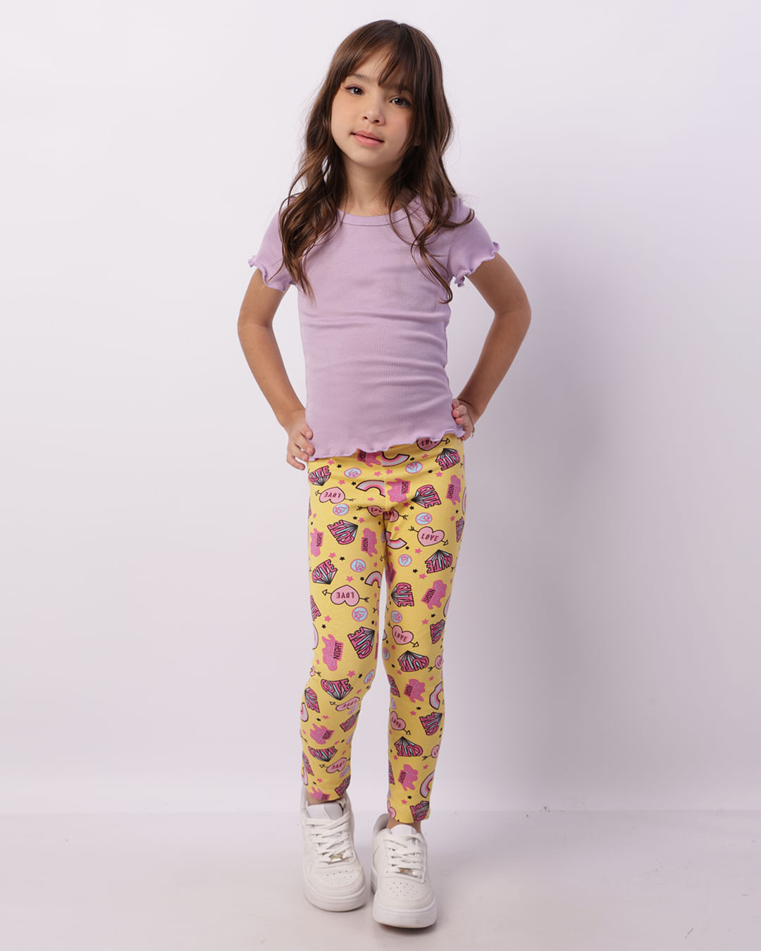 Mais Detalhes: Calça legging infantil confeccionada em tecido algodão. Possui elástico embutido no cós, estampada, barra simples, acabamento e costura padrão.