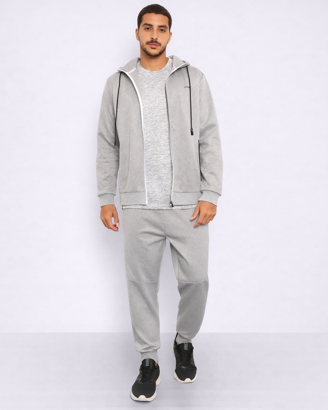 Calça masculina confeccionada em helanca. Possui cós com elástico e cordão para ajuste, bolsos frontais com fechamento por zíper com faixa refletiva, com recortes, modelagem jogger , acabamento e costura padrão.