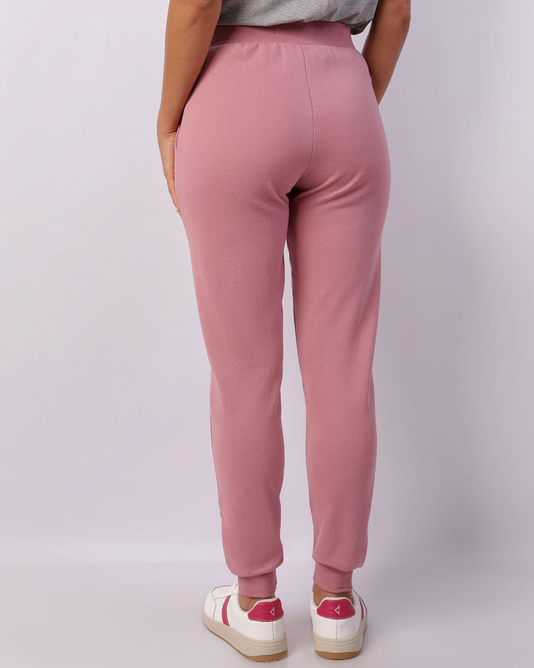 Mais detalhes: Calça feminina confeccionada em moletom felpado, possui modelagem jogger, cós elástico, bolsos frontais, frisos e barra comum com costura e acabamento padrão.