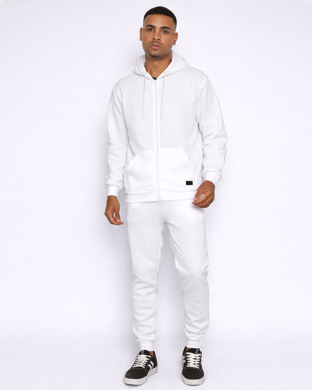 Calça masculina confeccionada em moletom. Sem forro mas peluciada. Possui cós com elástico e cordão para ajuste, bolsos frontais, modelagem jogger, acabamento e costura padrão.