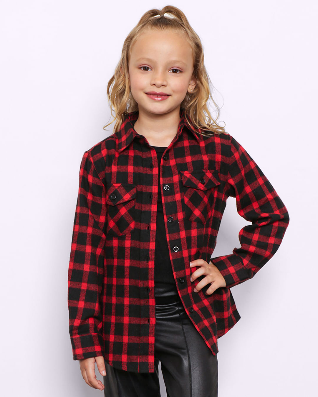 Camisa infantil confeccionada em tecido de malha flanelada. Possui gola dobrável, manga longa com botão no punho, bolso frontal, caimento reto, fechamento por botões, estampa xadrez, acabamento e costura no tom. Peça quentinha com tecido confortável, ideal para os dias mais frios.