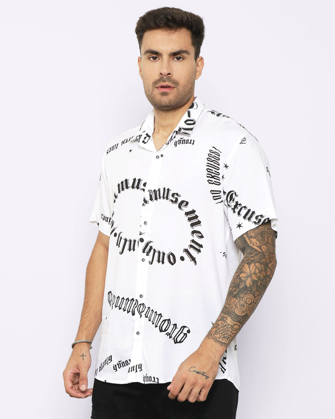 Camisa Masculina Estampada Frases Viscose Branca na Lojas Torra