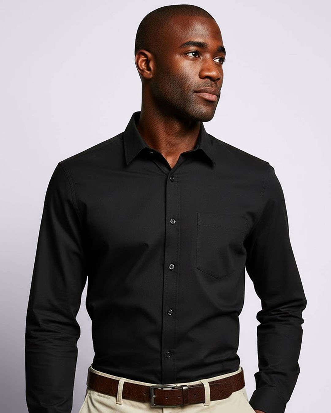 Camisa plus size masculina confeccionada em malha, possui gola dobrável, manga longa, fechamento por botões, peça com bolso frontal com costura e acabamento padrão.