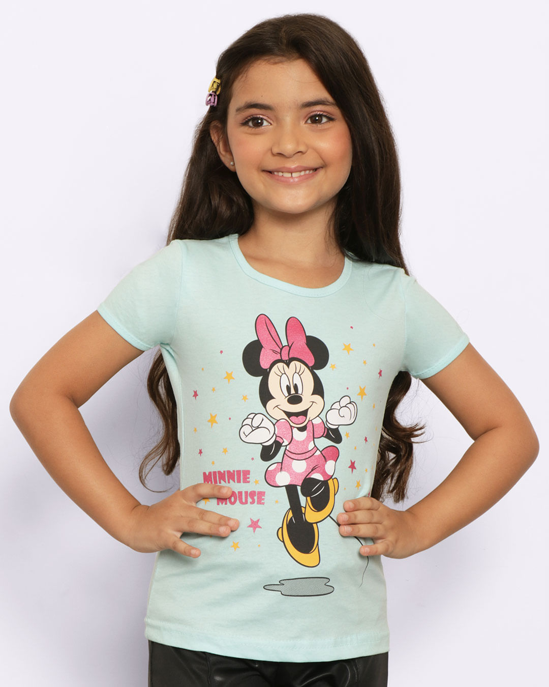 Descrição da estampa: Estampa personagem Minnie feliz com estrelas