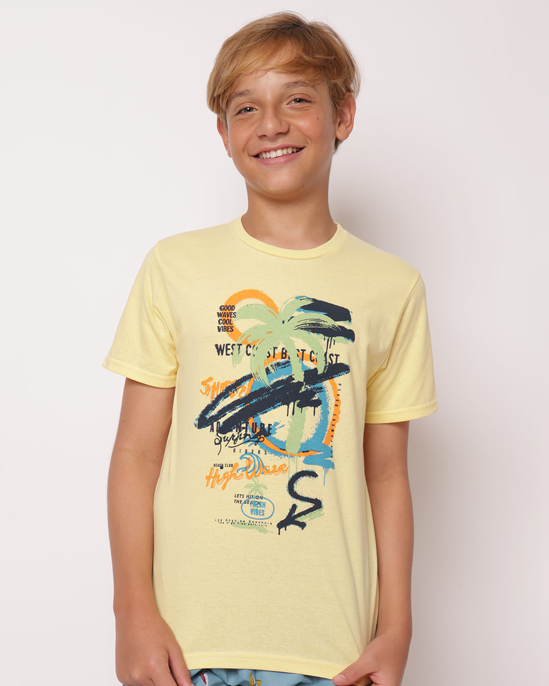 Descrição da estampa: Estampa frontal tropical com escrita