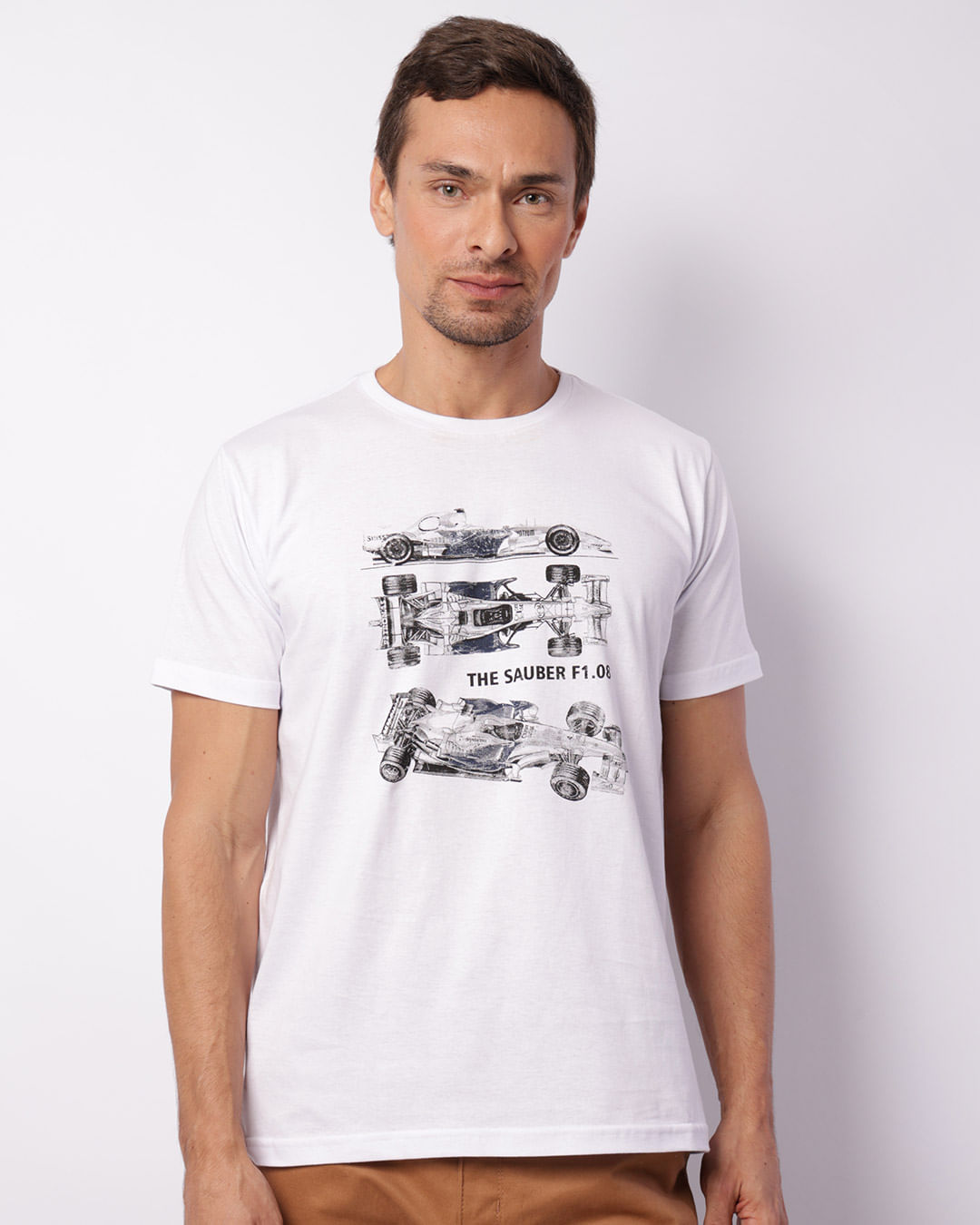 Descrição da estampa: Estampa frontal de carros de corrida