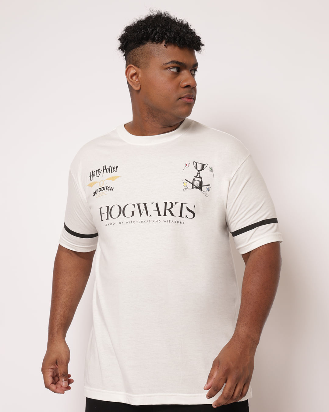 Mais Detalhes: Camiseta plus size em algodão com estampa Hogwarts na frontal, proporcionando conforto e toque macio. A modelagem padrão garante caimento leve e cheio de estilo para o dia a dia.
