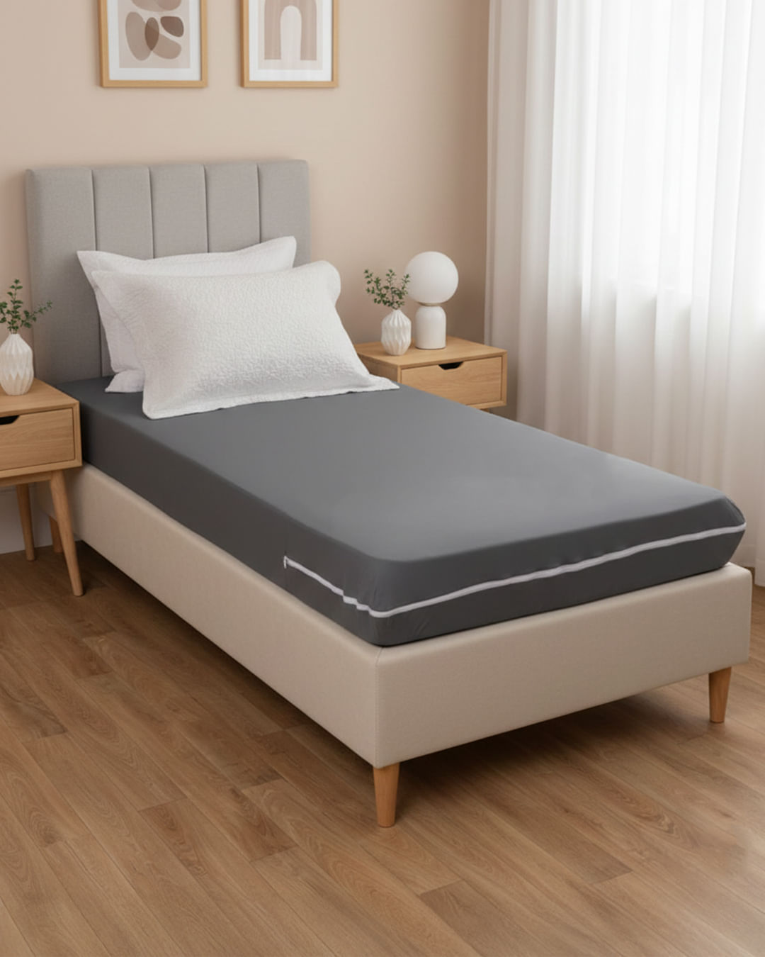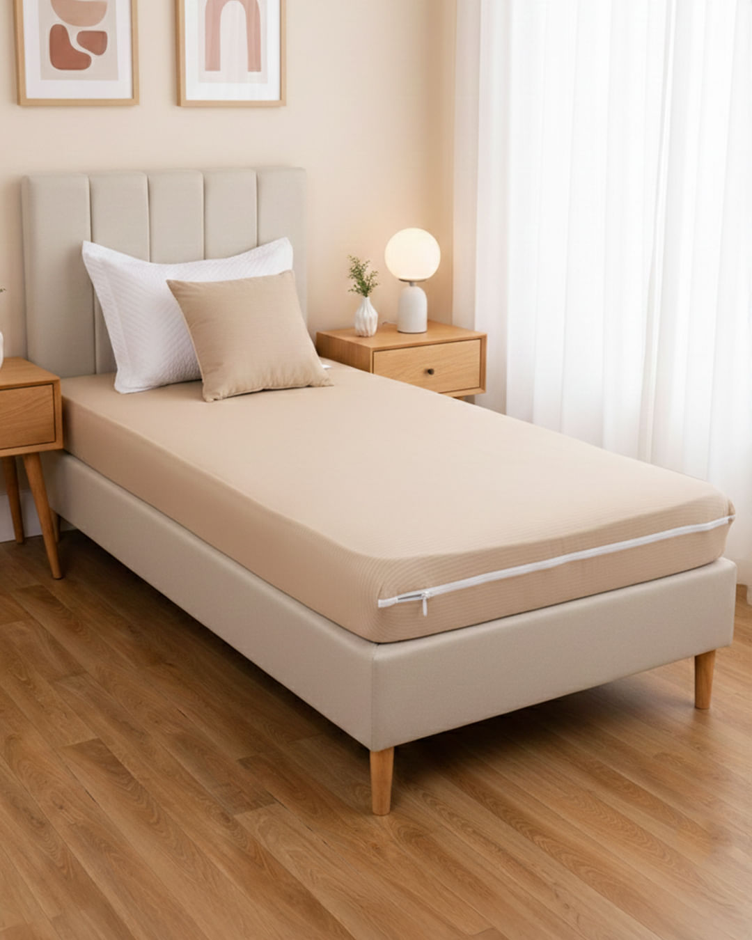 Capa solteiro confeccionada em tecido de poliéster. Possui zíper para fechamento, toque leve, macio e de secagem rápida. Complementa a decoração do ambiente com muito charme e aconchego.