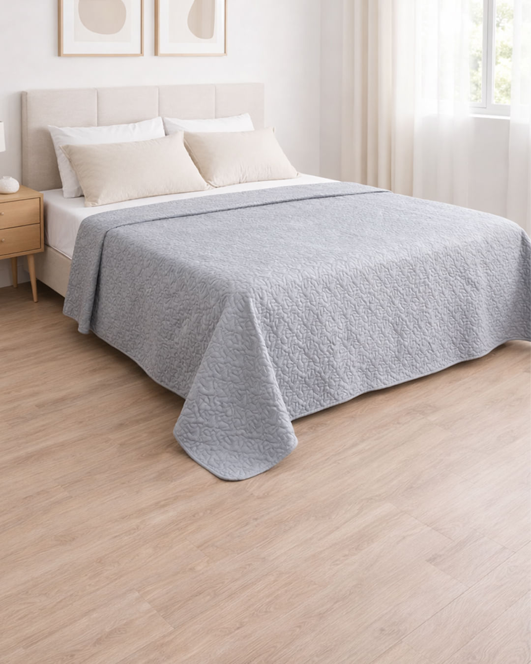 Colcha casal confeccionado no tecido microfibra 150 fios. Possui toque macio em matelassê, com acabamento em viés, secagem rápida e costura padrão. Aproveite para incrementar a decoração do seu quarto e trazer mais conforto para sua cama!