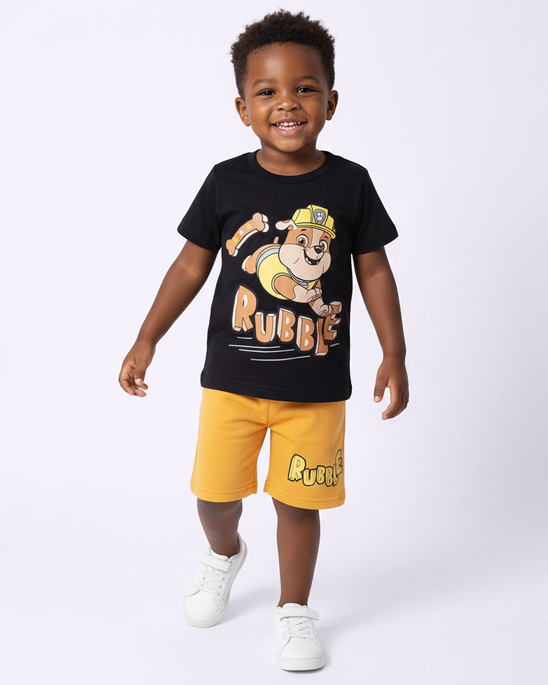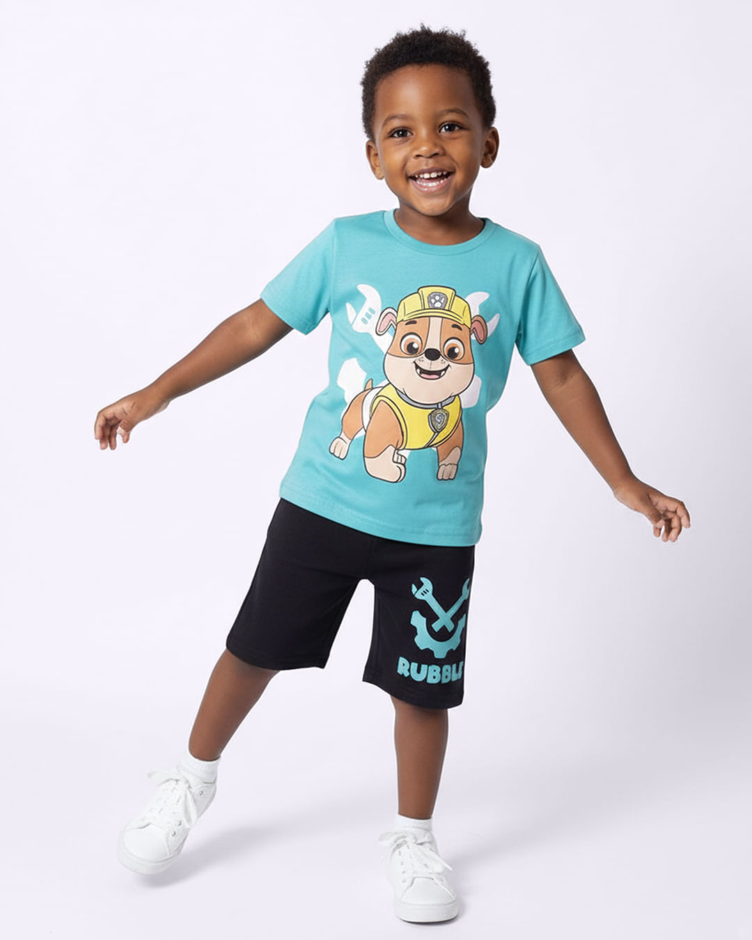 Mais detalhes: Conjunto bebê menino confeccionado em tecido de malha. Possui camiseta, gola redonda, manga curta e estampa frontal Rubble. Acompanha bermuda, com elástico no cós, modelagem curto, com barra simples e costura padrão.
