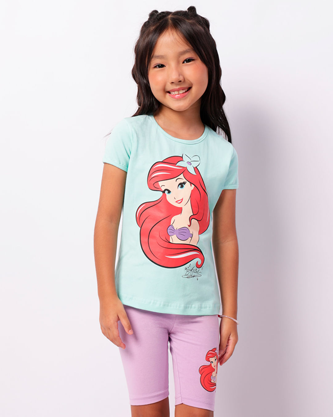 Mais detalhes: Conjunto infantil Disney A Pequena Sereia confeccionado em algodão. Possui blusa, gola redonda, manga curta e estampa frontal Ariel. Acompanha short com elástico no cós, modelagem curto, estampa Ariel na perna, com barra simples e com costura e acabamento padrão.