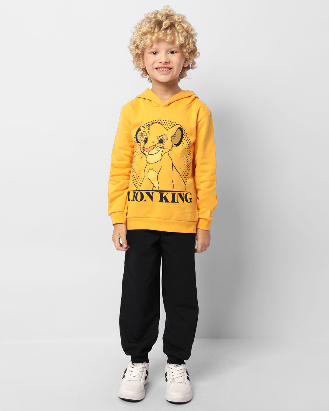 Conjunto infantil confeccionado em tecido moletom peluciado. Possui blusão, manga longa com capuz, estampa frontal do rei leão. Acompanha calça jogger cós com elástico, barra em ribana com costura e acabamento padrão.