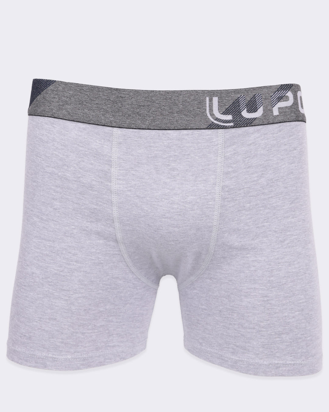 Cueca boxer masculina confeccionada em malha de algodão, possui modelagem boxer, cós com elástico e estampa e barra comum com costura e acabamento padrão.