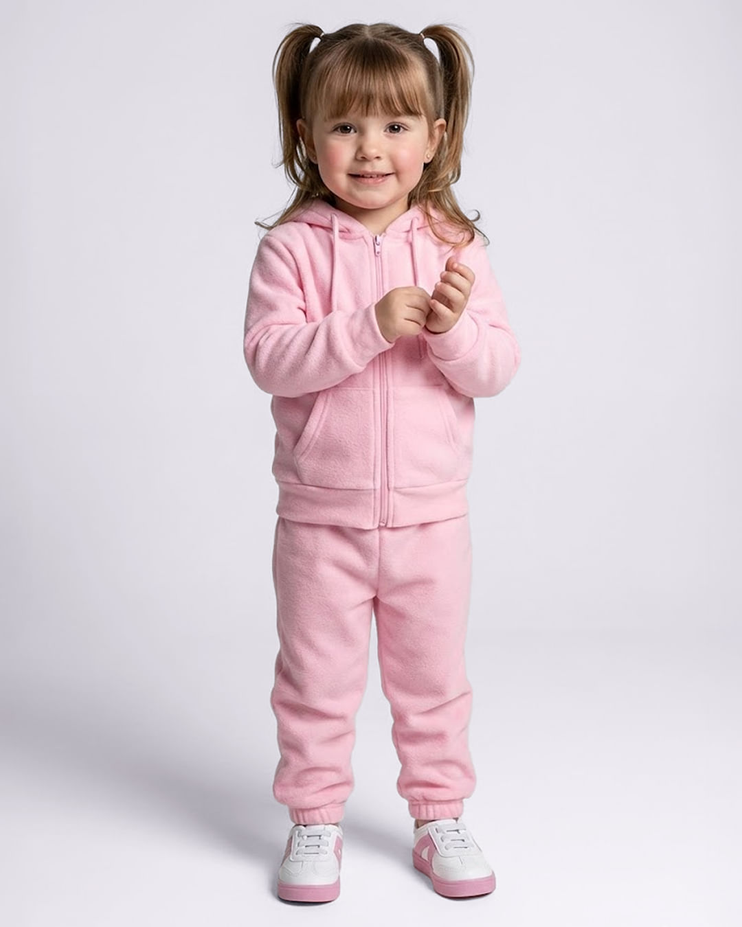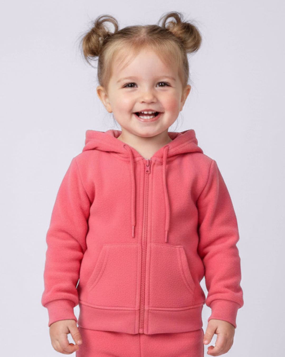 Mais detalhes: Blusão bebê confeccionado em fleece. Possui manga longa, com capuz forrado e cordão de ajuste, com bolsos frontais, punho e barra com ribana, com costura e acabamento padrão.