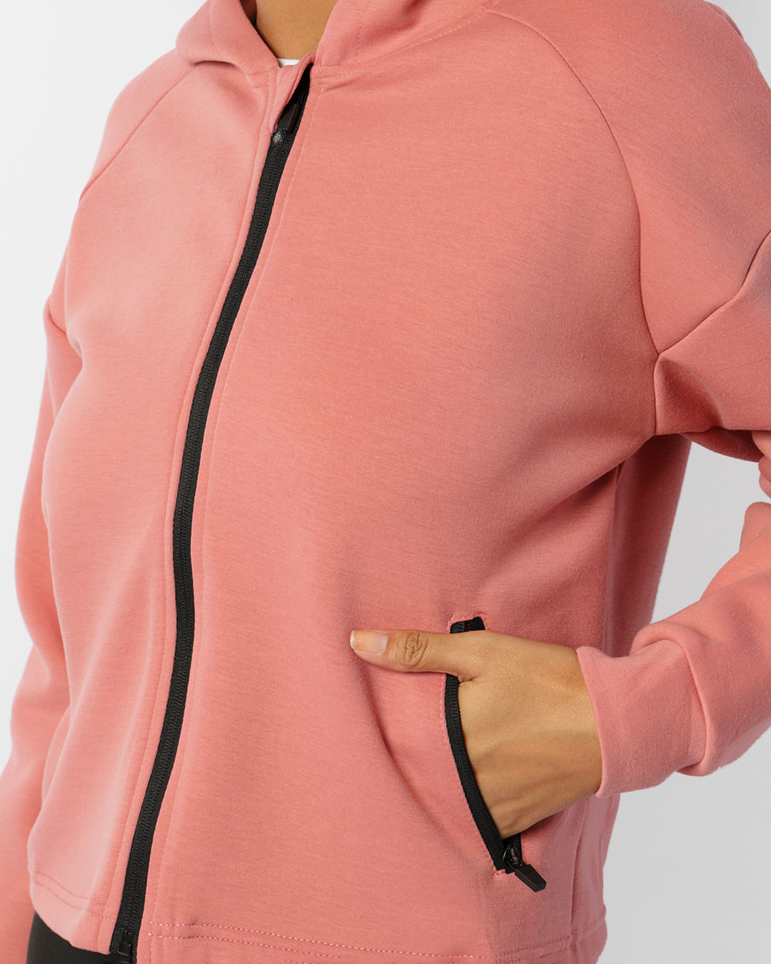 Produto OriginalMais detalhes: Jaqueta fitness feminina, confeccionada em neoprene, modelagem padrão. Possui capuz e cordão de ajuste, zíper para fechamento, bolsos frontais com zíper. Com costura e acabamento padrão.