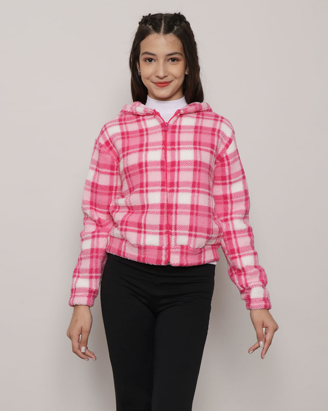 Jaqueta Juvenil Sherpa Xadrez Rosa Nas lojas Torra