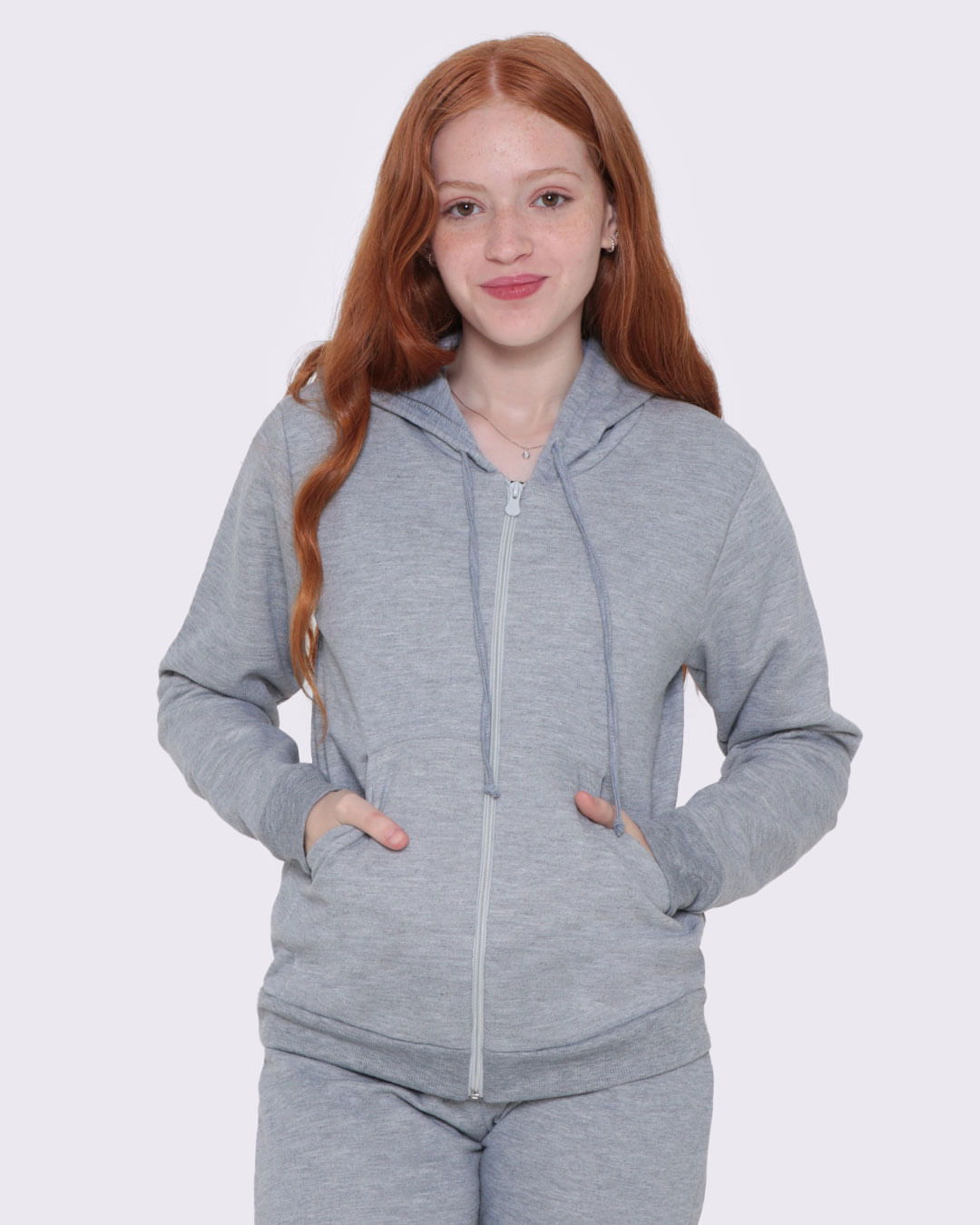 Mais detalhes: Jaqueta Moletom juvenil, confeccionado em poliéster, acabamento interno felpudo, manga e pulso com elástico modelo ribana, gola com capuz e cordão ajustavél, fechamento por zíper, bolsos frontais, com costura e acabamento padrão.