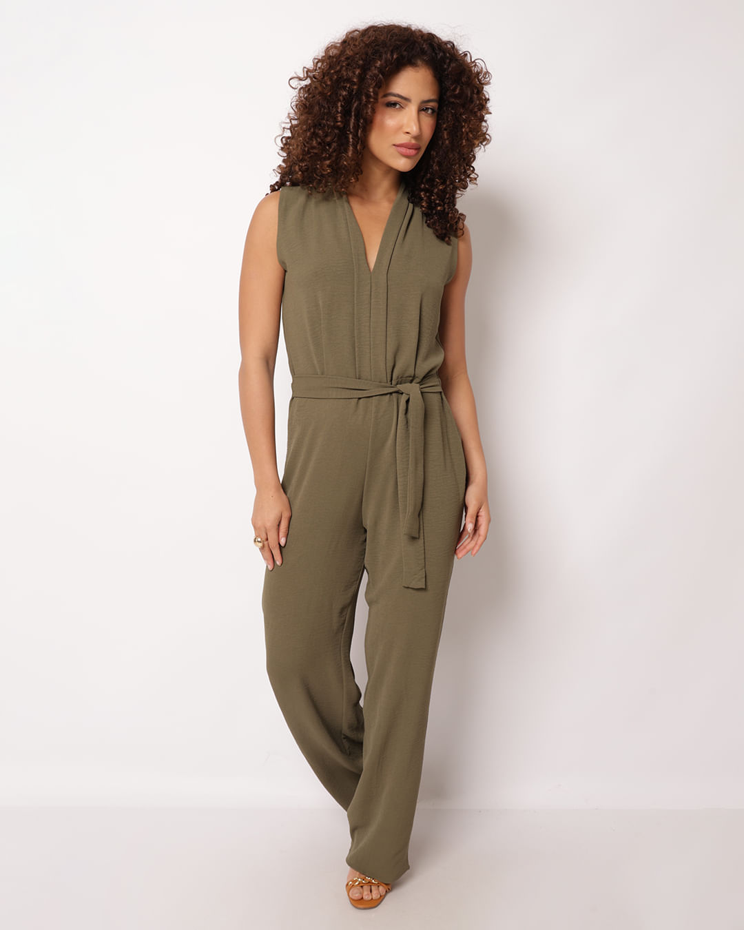 Este macacão longo Berry & Co. é sinônimo de elegância e conforto. Confeccionado em crepe leve, possui decote em V com detalhe delicado e amarração na cintura, que valoriza a silhueta feminina. O caimento fluido e o acabamento refinado garantem um visual sofisticado, ideal para ocasiões especiais ou produções casuais elegantes. Combine com sandálias de salto ou rasteiras para um look moderno e equilibrado.