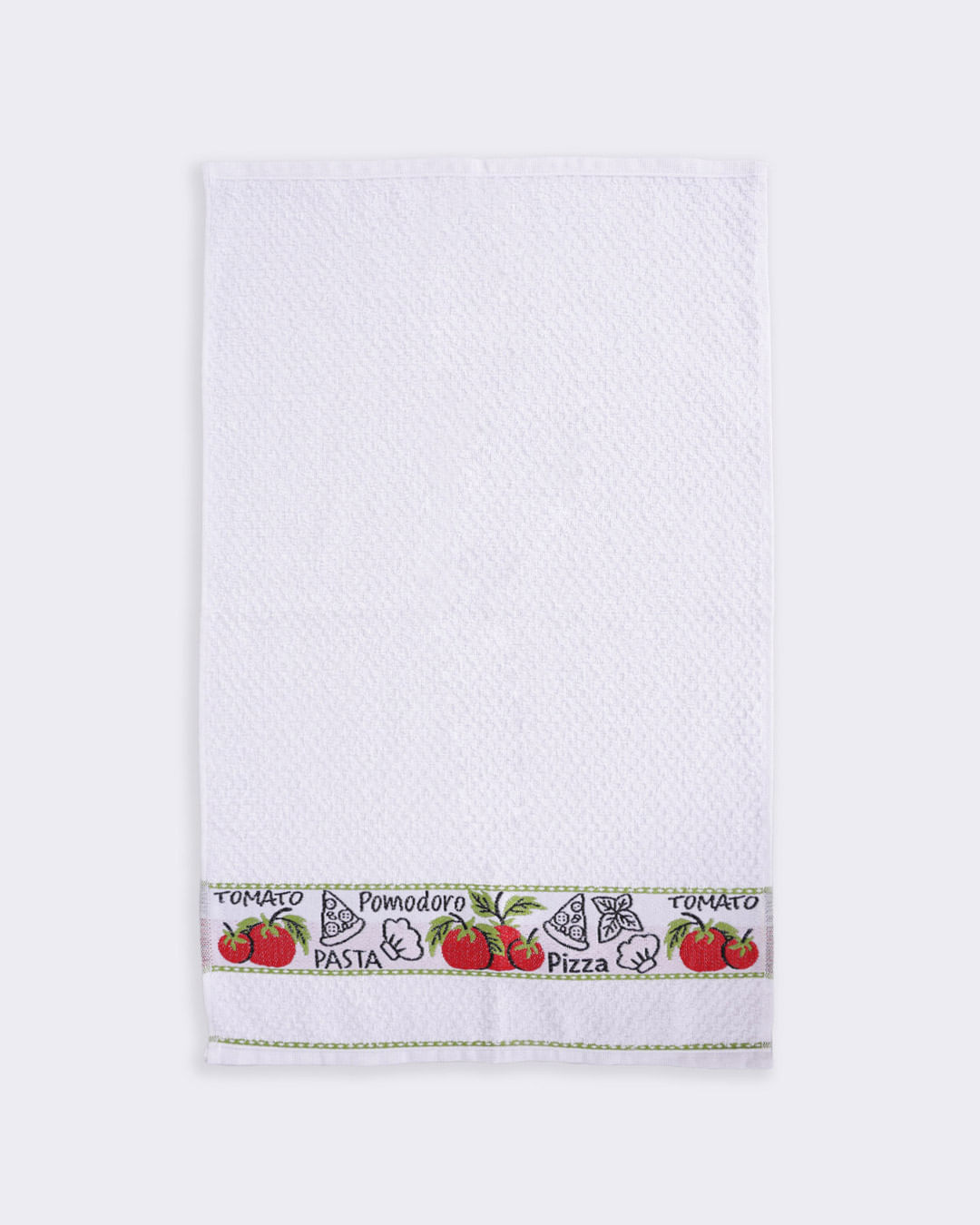 Pano de copa confeccionado em tecido de algodão. Possui alta absorção, barra bordada de Tomates. Invista!