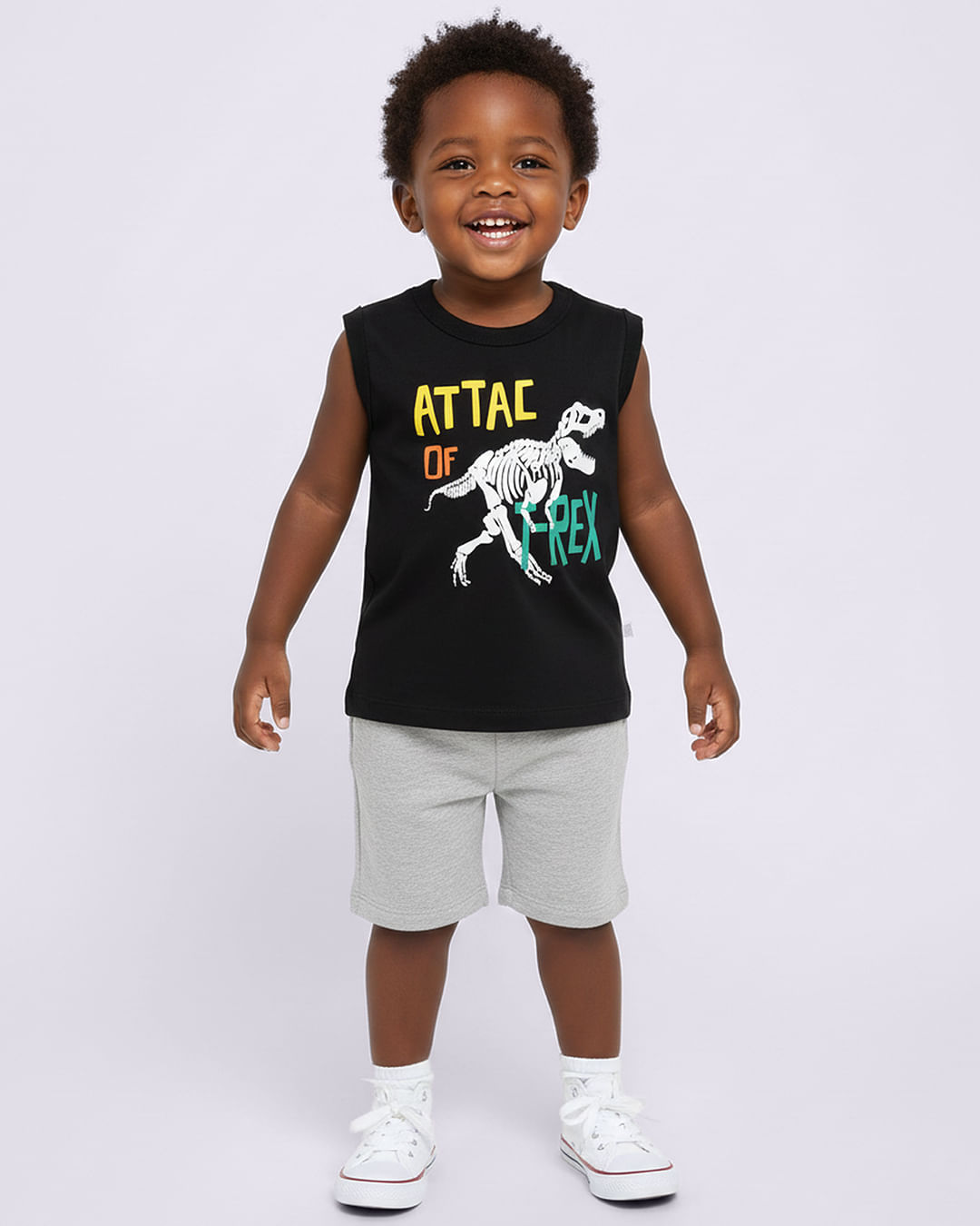 Regata masculina confeccionada em tecido algodão. Possui modelagem reta, gola redonda, cavas sem manga, com estampa frontal. Acabamento e costura padrão.