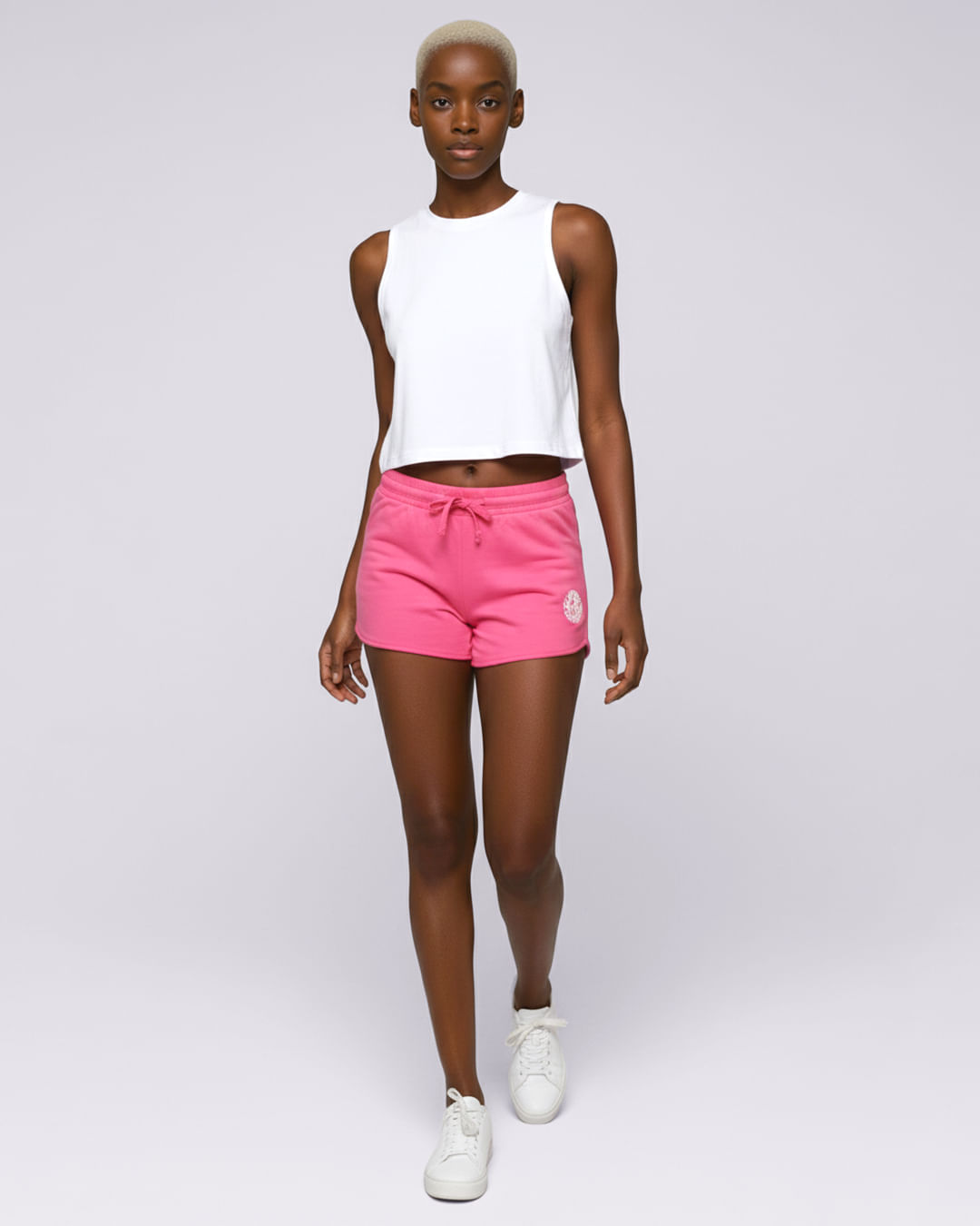 Short feminino confeccionado em moletinho, possui modelagem curta, cós regular com elástico, bordado na parte frontal, com costura e acabamento padrão.