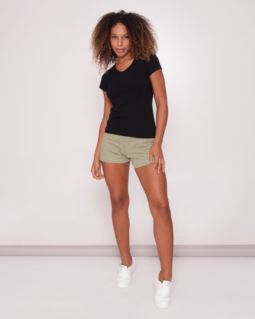 Mais detalhes: Short Feminino, confeccionado em moletinho. Modelagem curta. Possui cós com elástico e cordão decorativo, tecido levinho. Com costura e acabamento padrão.