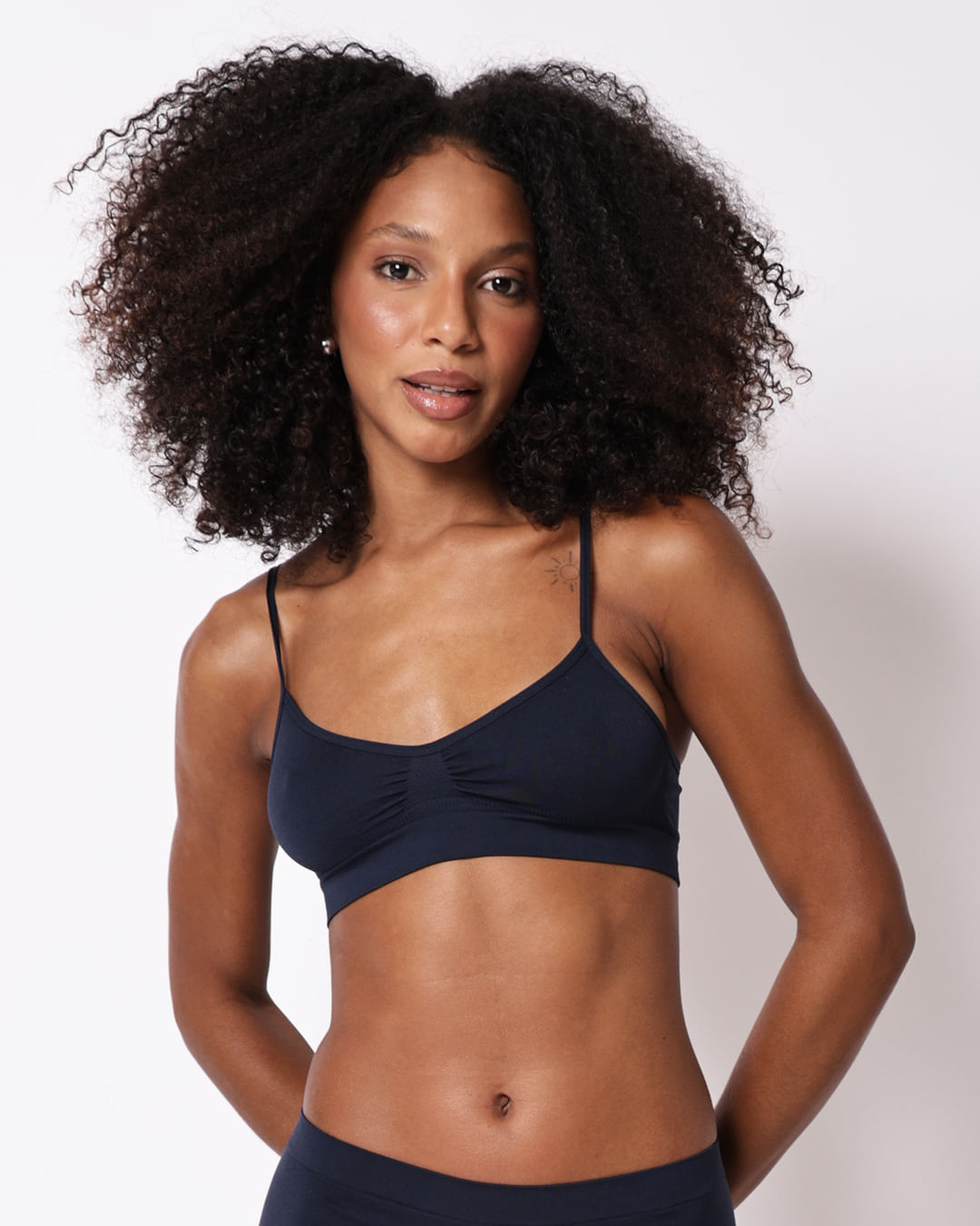 Mais Detalhes: Sutiã feminino modelo top confeccionado em tecido macio e flexível, proporcionando conforto e ótimo ajuste ao corpo. Possui design sem costura, que se adapta suavemente à silhueta e ajuda a evitar marcas sob a roupa. O modelo apresenta decote em V que valoriza o busto e alças finas ajustáveis, permitindo melhor regulagem conforme a preferência. Conta com base mais larga abaixo do busto, oferecendo maior sustentação e estabilidade ao vestir. Leve e confortável, é ideal para o uso diário, podendo ser usado sozinho ou como peça íntima em diferentes combinações.