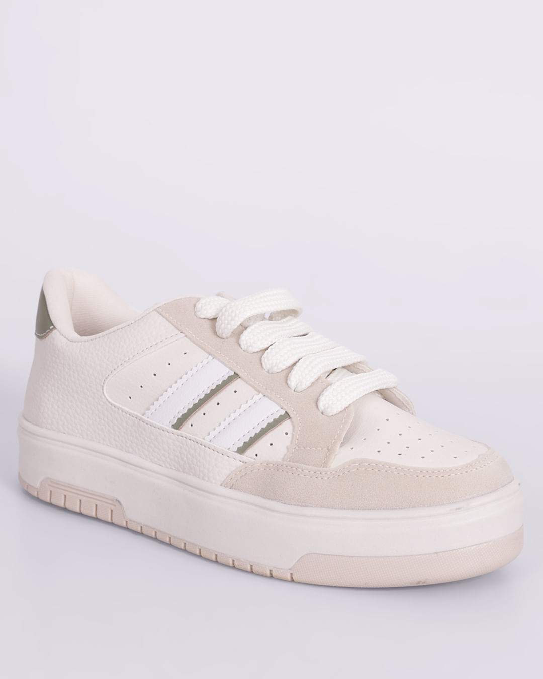 Mais detalhes: Tênis feminino confeccionado em material sintético têxtil, possui modelagem casual, recortes animal e texturas, palmilha macia e removível e solado com frisos antiderrapantes com costura pespontada no tom e acabamento padrã