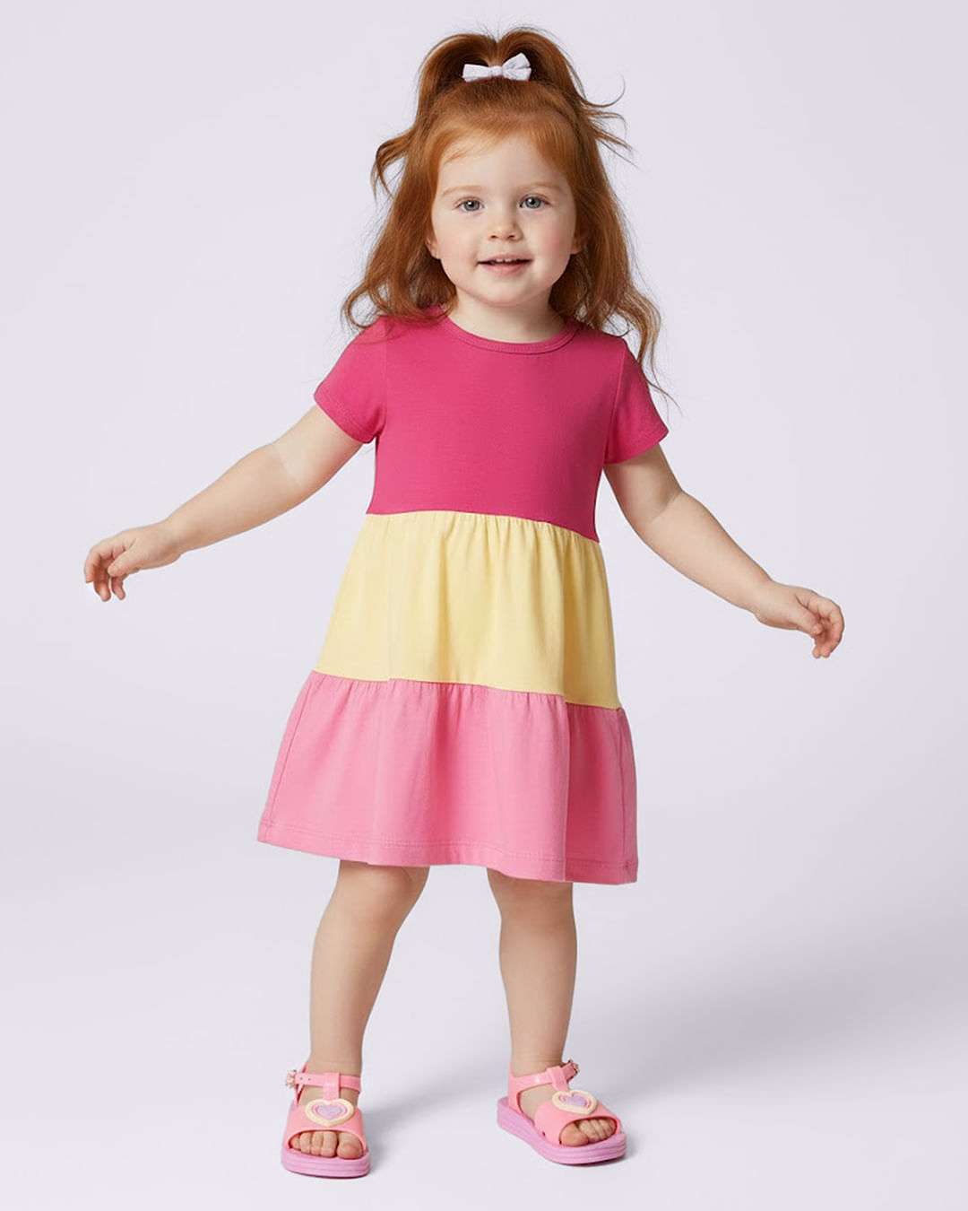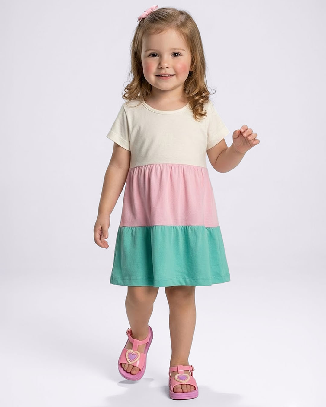 Vestido bebê confeccionado em malha, possui manga curta, gola redonda, estampa da personagem Minnie da Disney, saia poá verde com acabamento e costura padrão.Instruções de lavagem